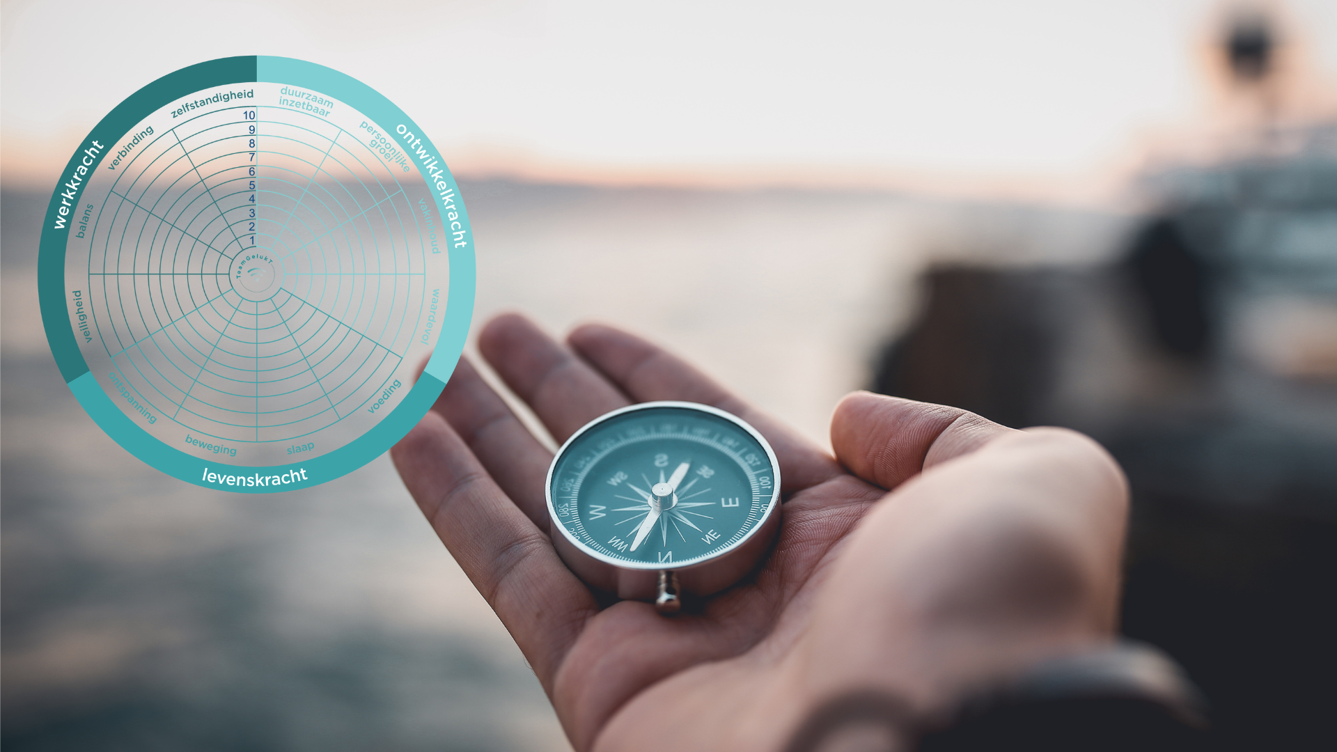 Het krachtenwiel is verdeeld in werkkracht, ontwikkelkracht en levenskracht. Deze krachten hebben allemaal invloed op je welzijn, je vitaliteit. Bij elk van de krachten is een verdeling gemaakt van een viertal pijlers. Dit zijn jouw persoonlijke indicatoren en geven inzicht hoe je nu "scoort." Je kunt het wiel dus blijven gebruiken als een nu-meting.